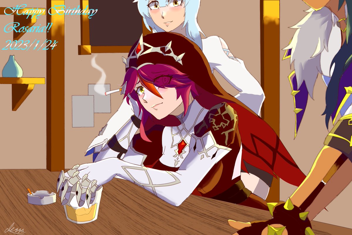 #Rosaria #ロサリア生誕祭2023 #ロサリア 「あら、まさかこの日を思えてもらってたなんてね」 「ええ...それで今日、真っ先に潰れた人が...」「会計を持つのはどうだ?」 「あら、後悔しないでよ?...乗ったわ」 一本強い芯を持った貴女が好きです お誕生日おめでとう!!