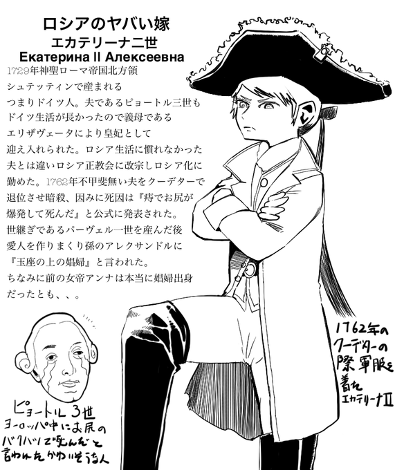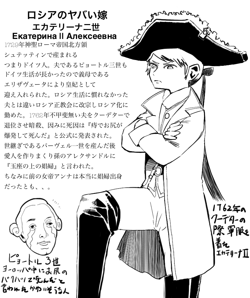 最近話題のロシア?ロマノフ朝のヤバイ女帝エカテリーナ二世。 #イラスト #イラスト好きな人と繋がりたい #絵描きさんと繋がりたい #ロシア #illustration #illust #art #Artist #Manga