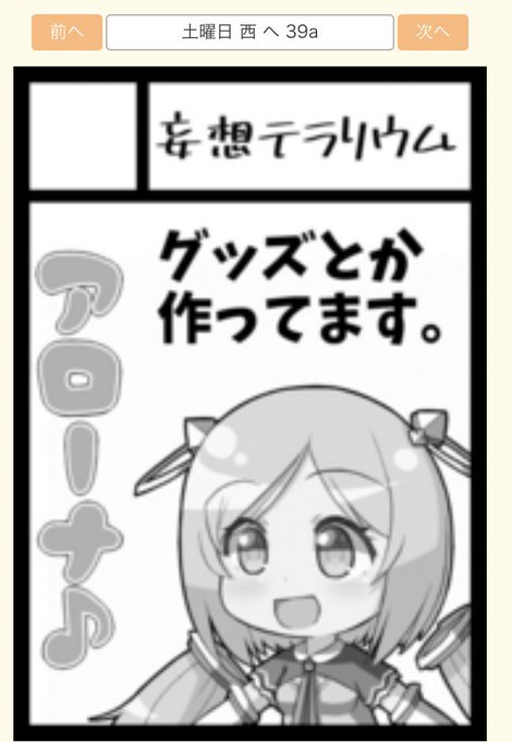 あなたのサークル「妄想テラリウム」は、コミックマーケット100で「土曜日西地区 "へ " 39a」に配置されました! webcatalog-free.circle.ms/m/Circle/16211… #C100WebCatalog #ロゼ隊 #アキロゼ