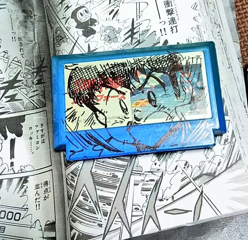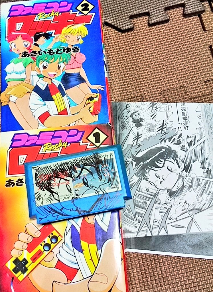 #ロッキーイラストコンテスト #ファミコン #レトロコンシューマー愛好会 写真①…超速衝撃連打ーーっ‼️している轟勇気さん(カセットはスターフォース)💪 写真②…遂にメルカリで大型ファミコンロッキー購入‼️(全2巻)✨ 写真③…みんな大好き舞子ちゃんも登場‼️