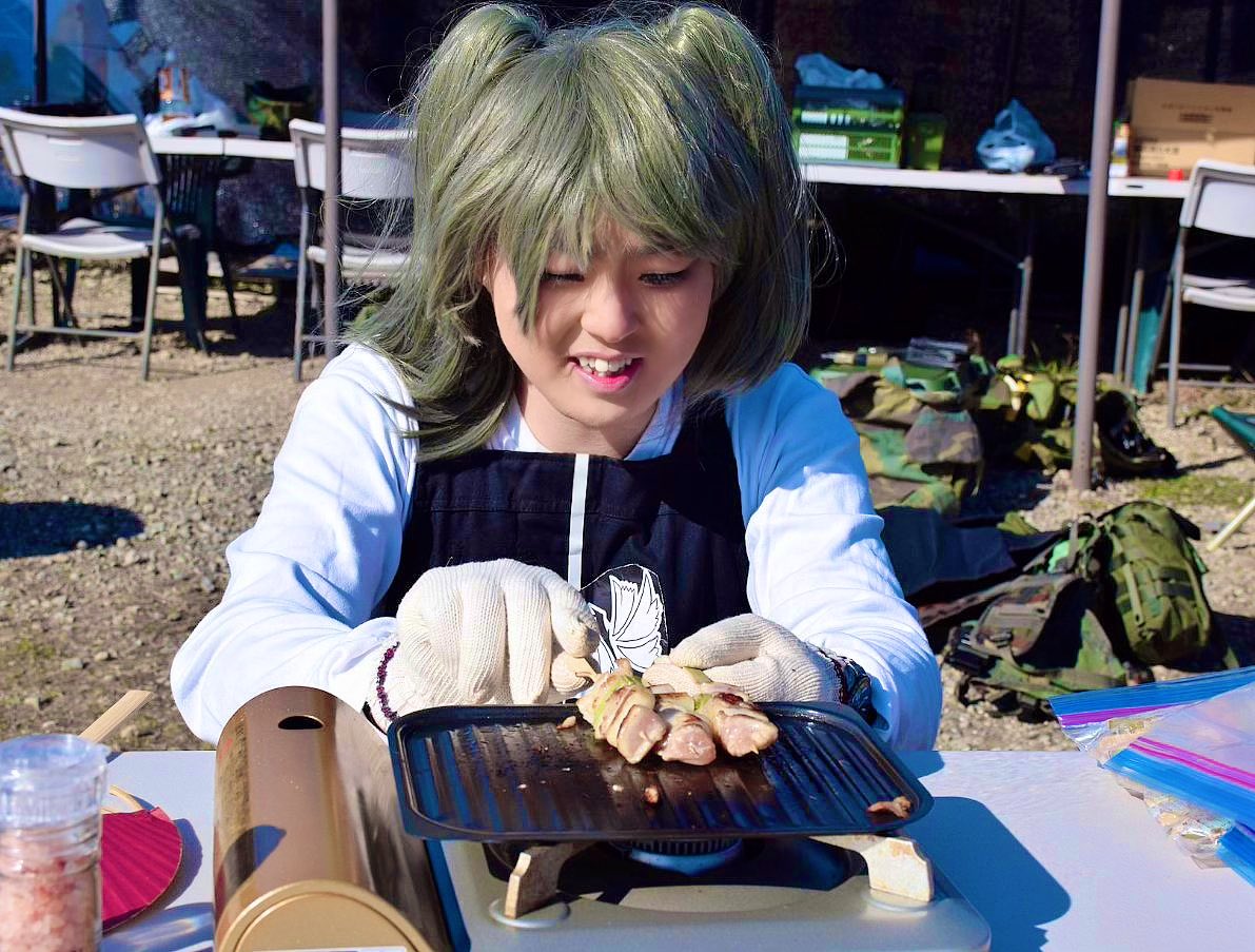 ロックヒルコスフェスお疲れ様でした! ローソンコラボ、エプロンの瑞鶴コスしてました! 焼き鳥焼いたりサバゲしたりでとても楽しかったです(^ω^) 焼き鳥は反省点が多かったのでいい勉強になりました 撮影:そうちゃんさん(@BB_RockHill ) #ロックヒルコスフェス