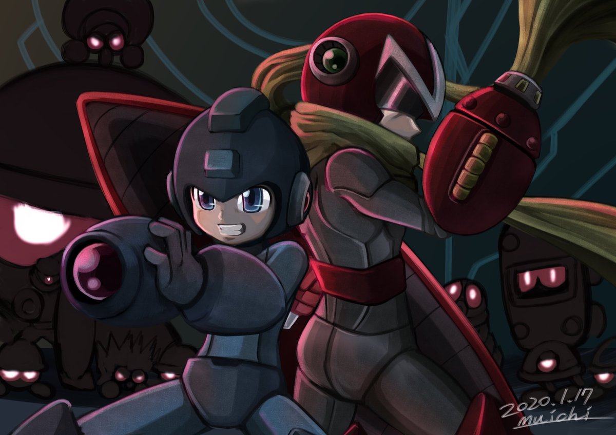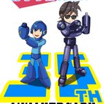 一日遅れになってしまいましたが、ロックマン35周年おめでとうございます!25周年記念にこの絵を描いたんですが、もう10年とは早いものです。これからもご活躍期待しています!#ロックマン35周年 #ロックマン