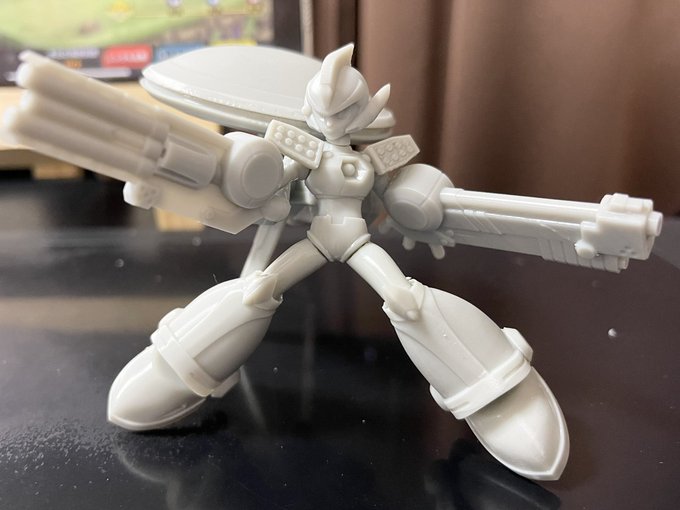 X(CM)アルティメットアーマーのフィギュア、細部の修正は必要ですがとりあえず形になりました! まずは全パーツを一度に出力できる全高7.5cm程度で。顔もいい感じに出ているのでは? 改めて見るとバックパックが本体並みにボリュームがあります⋯(笑); #ロックマンXDiVE #ロックマンXDiVE春一番