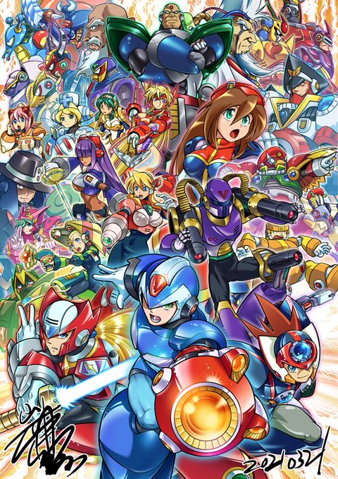 #ロックマンXDiVE春一番 ロックマンXDiVEというソシャゲのキャンペーンツイートです。僕の勘違いで本日がキャンペーン投稿最終日のようです。プレイされてないフォロワーの皆様、お騒がせしました。有難うございます。 XDiVEに触発されたifイラストです。漫画オリジナルキャラもいますがご勘弁を。