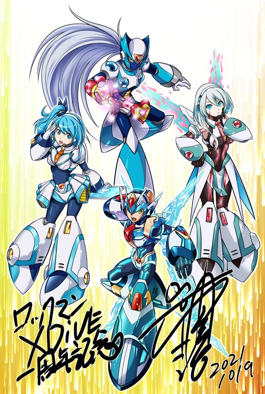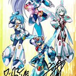 ロックマンXDiVE日本版1周年記念イラストラスト。 少し早いですが、改めて1周年おめでとうございます! サイズ合わせたつもりでしたがエックスくんが微妙に小さい^^;? いや、女性陣の顔をが大きかったのか? にしても青い! #ロックマンXDiVE #ロックマンXDiVE1周年