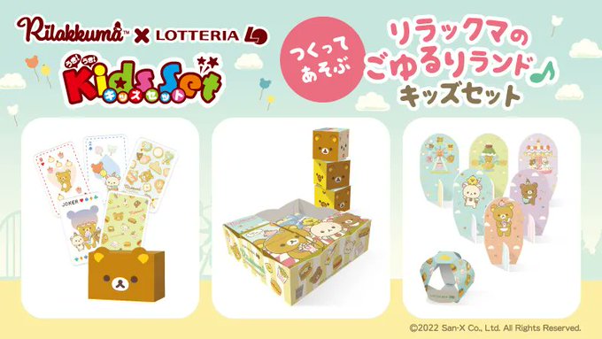 🍔#リラックマ ×#ロッテリア 🍔 11/1(火)から「リラックマのごゆるりランド♪キッズセット」が登場! 3種類の選べるおもちゃのデザインは「遊園地」がテーマ♪リラックマたちと一緒に、ごゆるり遊ぼう✨ 詳しくは🔽 lotteria.jp/special/rilakk…