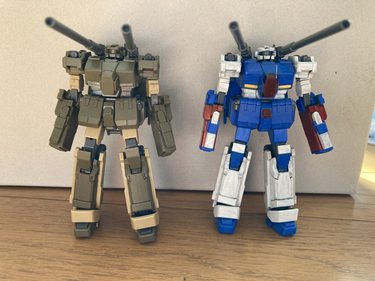 HG ロト 2機セット 組立ててみるとサイズの小ささに驚く 変形を完全再現した物になっていて一言で言えば可変式ガンタンクと言う感じ 小さいながらも武装も豊富な為遊べる幅が広い これも塗装が要る #ガンプラ #ガンプラの画像を貼るとRTされると聞いて #HG #ロト #ガンプラ好きと繋がりたい