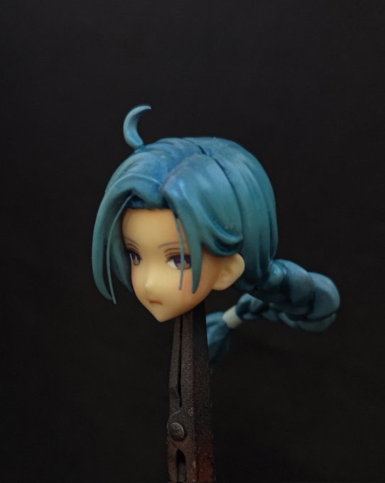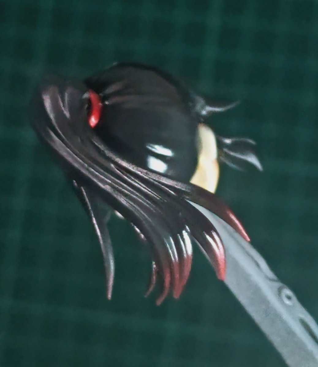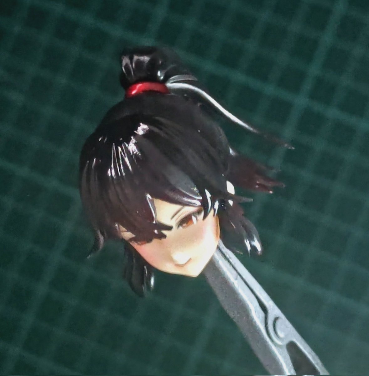 今日の朝模型 昴に続きアサルトリリィから御台場女学校ロネスネス所属から 長谷川里桃さん演じる長沢雪様のヘッド途中 このキャラは好きすぎて今回take2です(笑)1回失敗して塗装落とした😭 ポニーテールの毛先にも赤入れてみた😆 そしてロネスネス9人揃う😆 #ロネスネス #アサルトリリィドール部