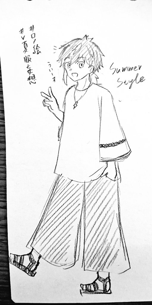 #V夏服妄想 #ロノ絵 ヤタさんのためとあらば底辺絵師、いざ参る!! という訳で文字通り突貫アナログですが描きました 髪型はハーフアップと悩みましたがこっちで twitter.com/Yata_2nd/statu…