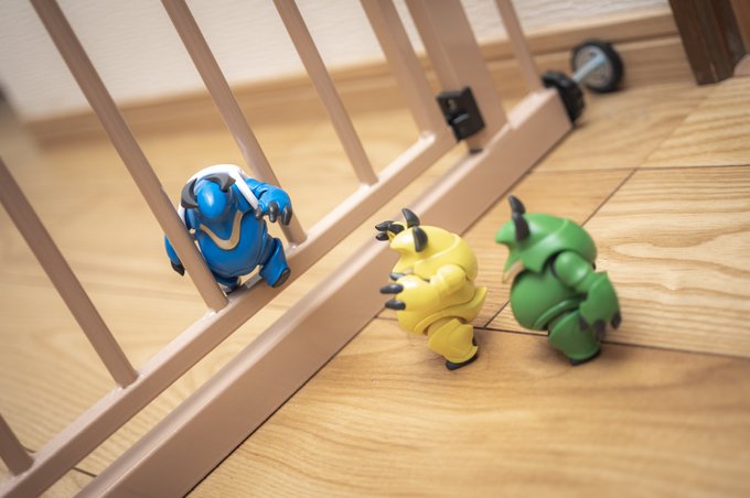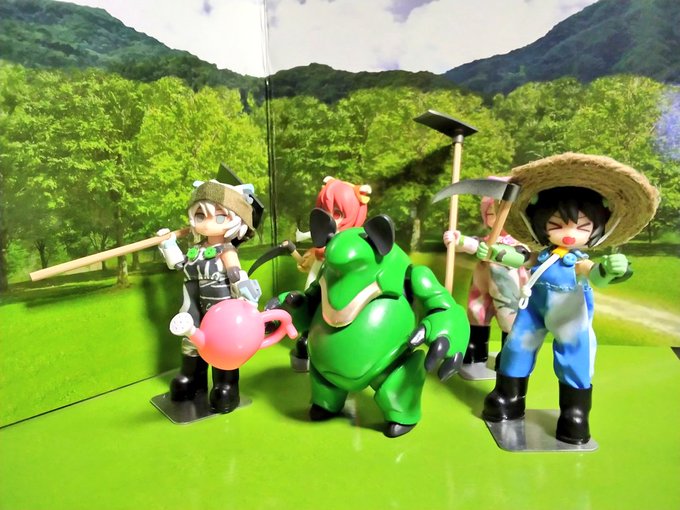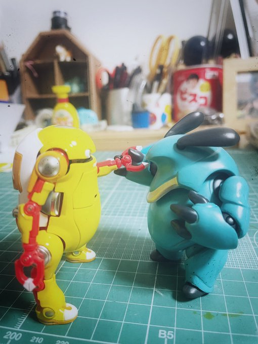 全員揃ったー!!!(*´∀`*) オリジナルちゃんだけ持ってなくて、最近見かけないので諦めてたんですが、たまたま発見! 一撃で来てくれました(´TωT`) 80'sちゃん、ロピアタンのスコップ強奪…(笑) #マンドレイクコレクション #メカトロウィーゴ #ロピアタン