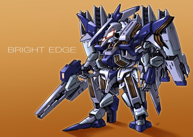#ロボイラストコンペ ディフォルメロボ部門 『BRIGHT EDGE』 超久々にオリロボを描きました 高機動型、右手ライフル左手ソードのシンプルな武装の機体です やっぱりこのくらいの頭身が目立たせたい頭は大きく、かつディテールも入れられるので描いてていちばん楽しいですね