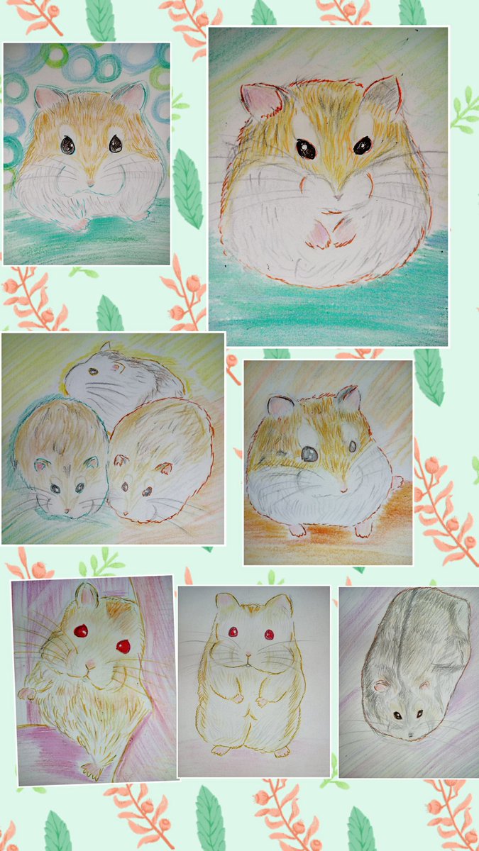 今月に描いた愛ハムスターイラストをまとめました。シルクちゃん、くるみちゃん、プリンス君達、リラックスしてくれてありがとう♥ #今月描いた絵を晒そう #ハムスター #ハムスター好きと繋がりたい #ロボロフスキーハムスター #ジャンガリアンハムスター