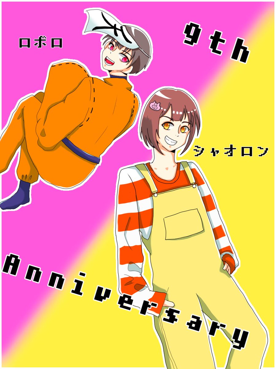 おめでとうございます!! とりあえず5分クオリティー!!! こんなネタ絵で終わらせてたまるか、ちゃんと描くぞ!(笑) #シャオロン9周年記念祭 #ロボロ9周年記念祭 #煽りポメラニアン9周年記念祭 #天の声9周年記念祭 #wrwrdFA