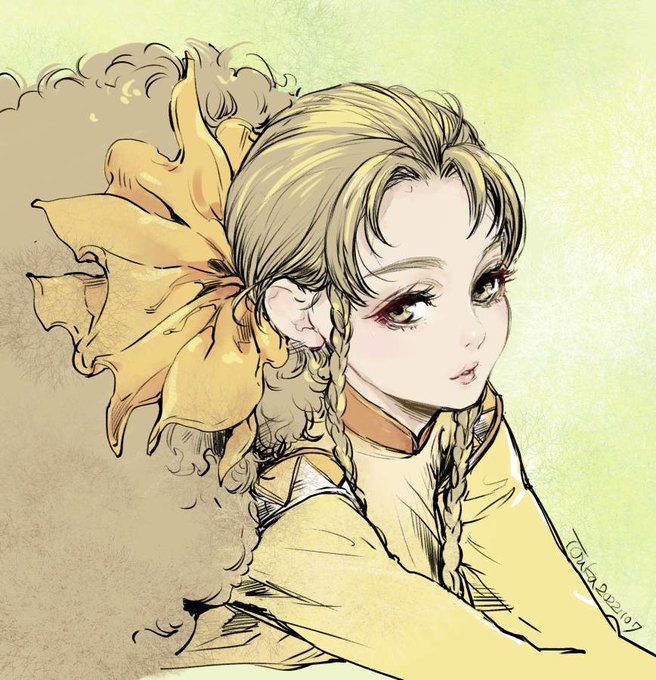 SQUARE ENIX様「インペリアルサガ エクリプス」にて 描かせていただきました、今年のバレンタイン衣装のサラになります。 髪と黄色のドレス描くの楽しかった☺️ そしてロマサガ3 お誕生日おめでとうございます! eclipse.imperialsaga.jp #インサガEC #ロマサガ3