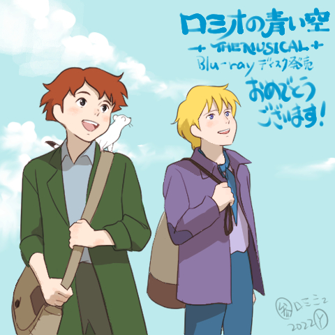 Blu-ray販売日まで後1ヶ月! 予約済みなので届くのが楽しみです 以前ラフだけUPしたFA、鳩の位置変えて仕上げました。 服と背景と鳩が飛んだ時のポーズは大体ロミミュ、時間帯と本の色はアニメ本編参考 #ロミオの青い空 #ロミミュ twitter.com/romisoramusica…