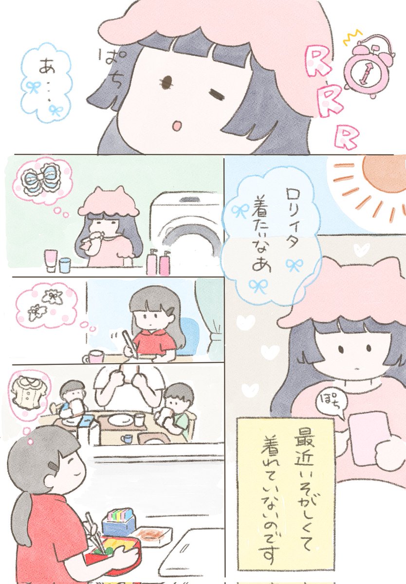 🌼ロリィタが着たくて着たくて描いた漫画🌼 最近忙しくって着れなくて…思いの丈をありったけの可愛いをこめて描きました✍️✨ 読んでいただけたらとっても嬉しいです💓どうぞよろしくお願い致します🎀✨ #エッセイ漫画 #ロリィタ #ロリータファッション #漫画が読めるハッシュタグ