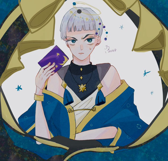 #ロロ・フランムに着てもらおう 【星に願いを】星送りの衣で描かせていただきました🌟 上記タグにて素敵なロロくんが沢山見れます 今回も素敵な企画立案ありがとう🥰 魔法で灯る願い星を集める スターゲイザーの役は……。。 でも、とてもお似合いです✨ 楽しかった!! #ツイステファンアート