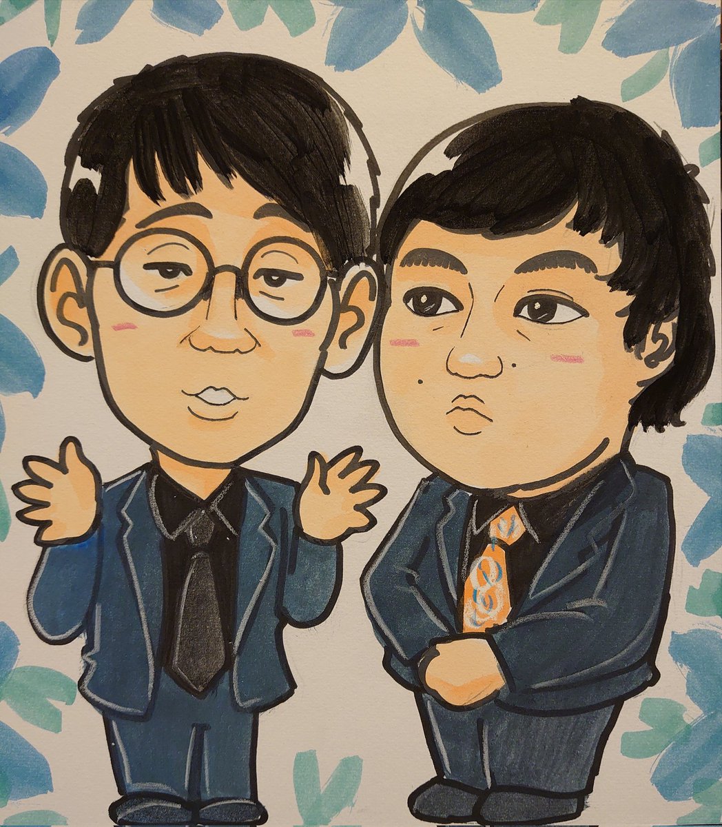 M-1グランプリ2021ファイナリスト描いてみた(*^^*) ロングコートダディさん コントのイメージ強かったので漫才は新鮮でした(*^^*) 兎さん…ベムスターそっくりwww #似顔絵 #ロングコートダディ #堂前透 #ロングコートダディ堂前 #兎 #ロングコートダディ兎