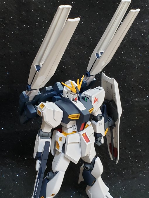 Hi-νガンダムもロングレンジフィンファンネル持たせれるやんw #ガンプラ好きと繋がりたい #ガンプラの画像貼るとRTされると聞いて #ガンプラはどんな自由な発想で作ってもいいんだ #ロングレンジフィンファンネル