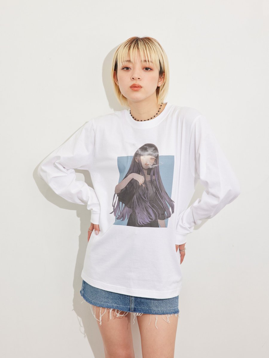『SMOKING GIRL』 ロングスリーブTシャツ Creator:七癖みり(@Plul_Qdqdvh) Model:180cm Size: XL カラーはホワイト・ブラックの2種♪ ■七癖みり item shop.fact101.jp/nanasemiri#item #illustration #illust #drawing #animegirl #animedrawing #animejapan #ロングTシャツ #サブカル系ファッション