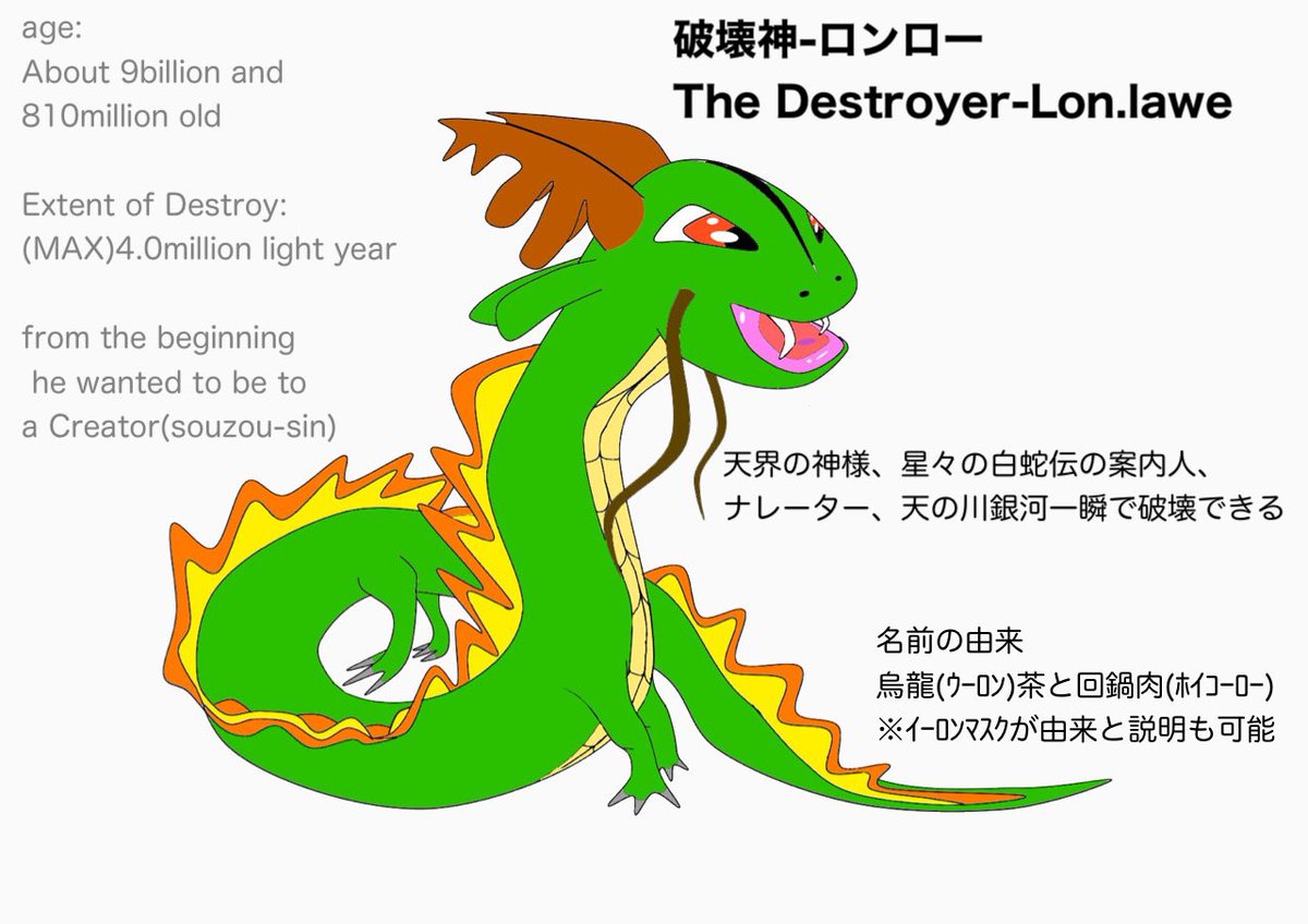 破壊神ロンローの龍玉ペン 破壊神ロンローは22.3mの2980kg、3トンは個龍的に超えたくない肉体年齢が人間でいうアラサーの爺さん ですが龍玉ペンの大きさ重さ大きさの設定や能力がいい加減なので、決めたいと思います。 下に設定テンプレートあります #character #イラスト #Gxsps #ロンローHEROS