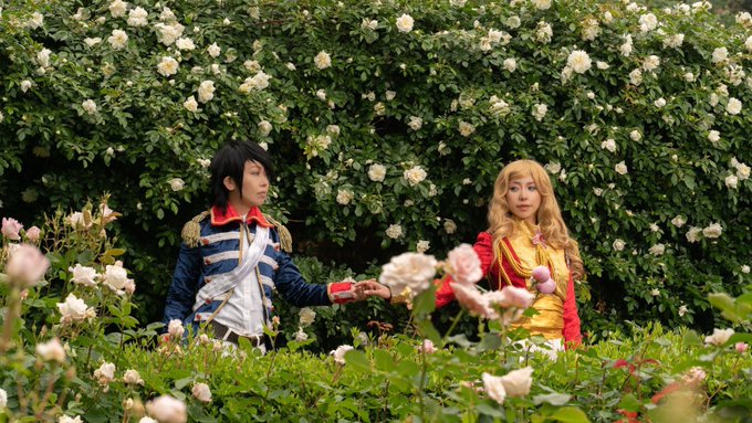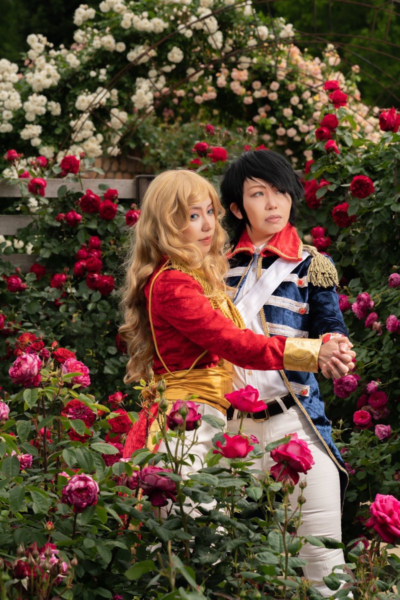 【速報】 #ローズガーデン 🌹で念願のベルばら撮影📸 オスカル@cos_aki アンドレ@cos_aki Photo📸 @cgcore3939 様 #あいらxAki #めいどばいあいら #Aki_cosplay #レッドヒルヒーサーの森
