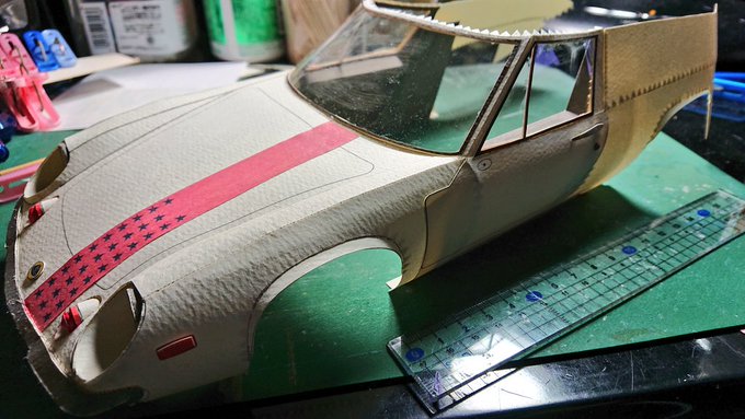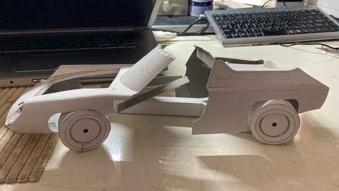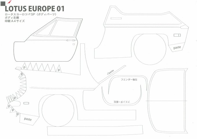 ✂️皆さん、これは何だと思いますか?紙くず? ペーパークラフト制作です!(途中経過) 🇬🇧イギリスの名車ロータスヨーロッパ! 以前から図面描いて始めているのですが難しいです。 ミニカーを参考にしています!(写真参照) #ペーパークラフト #ロータスヨーロッパ #ペーパークラフト車