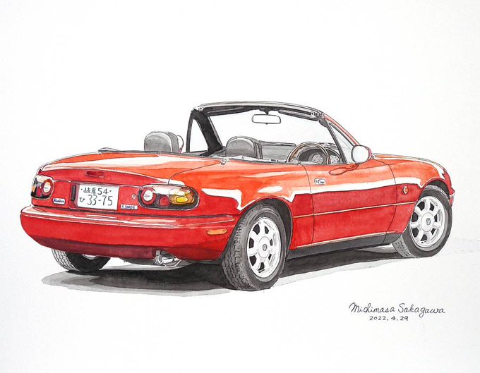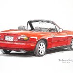 2022.4.29 ロードスターNA ユーノスロードスター(初代NA)に取り掛かっていましたが、大雨による突貫工事?にて、初代赤いロードスターが完成しました。NRリミテッドの前にセカンドカーとして活躍してくれた懐かしい愛車です。 #roadsterNA #watercolor #ロードスターNA #水彩画 #ロードスター