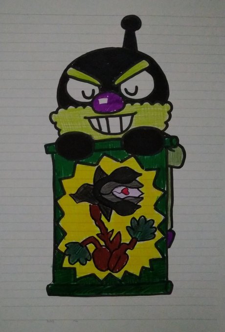 #アンパンマン版深夜のお絵かき60分一本勝負 今回のお題「バイキン草」 ばいきんまんに、バイキン草の存在を教えてくれたのは、バイキン仙人。 まごころ草の花粉が入った。ロールパンナに、バイキン草のエキスを入れることを、提案したのも。バイキン仙人の教え。