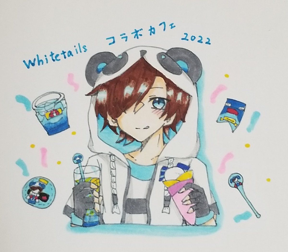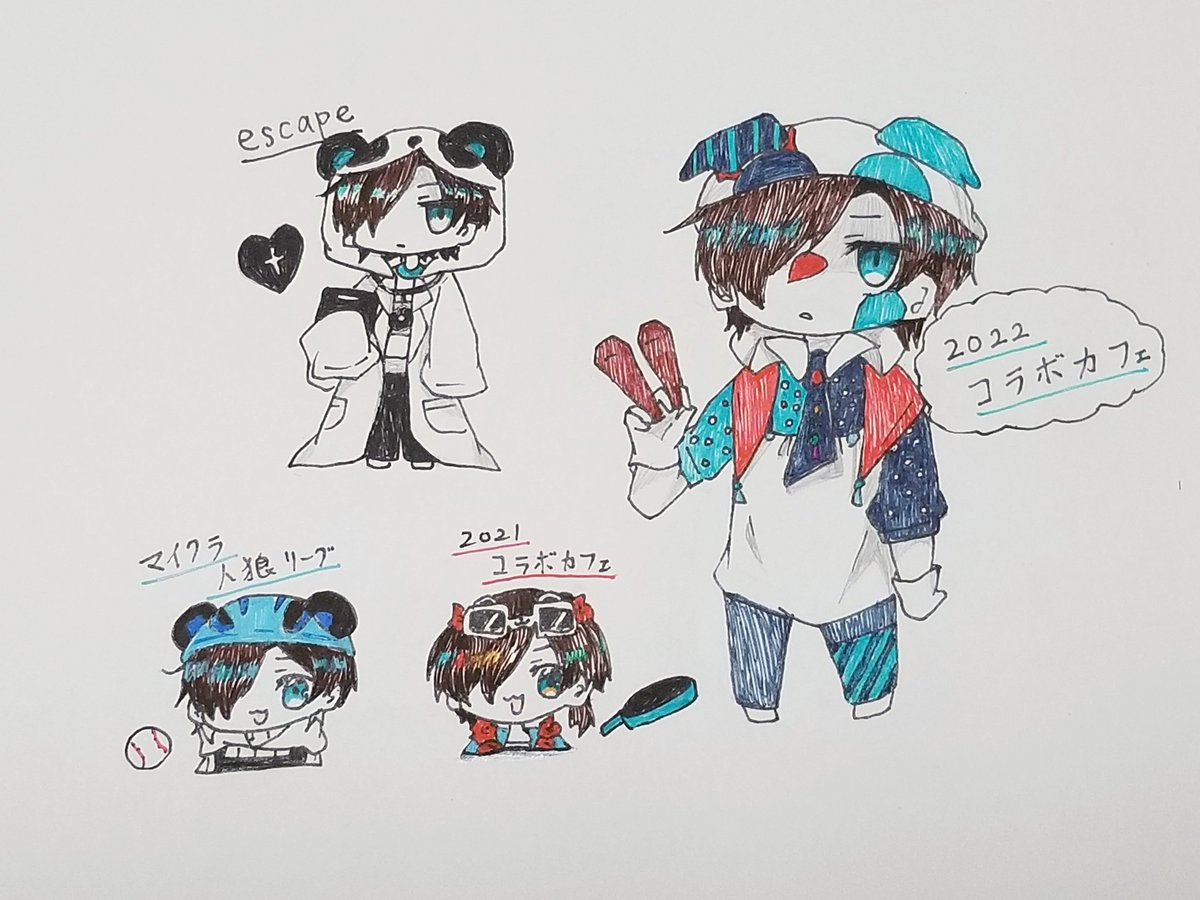 #ワイテルズコラボカフェ2022 カフェが楽しみすぎて、いつの間にか描いていました。(現在アイコン) リア友の推しは、まだ塗り途中です。(シャークん) コピック初心者。 カフェの服装は下書きのまま…🙇 #イラスト #ワイテルズ #ワイテルズ好きさんと繋がりたい #しろっぽ #コピックイラスト