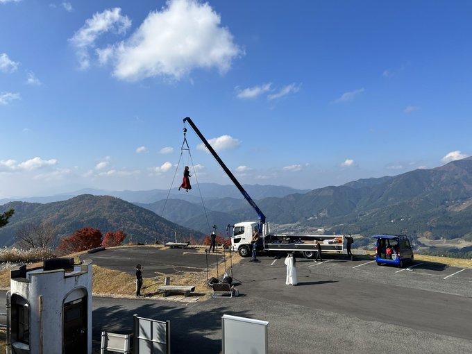 今日はワイヤー用いてとある撮影。 岡山県にきてます(^^) 景色が最高で天気も良い‼︎ 映えます‼︎ @miyu20806 @nao__photo__ @kenpi0629_ @haruka___smile #ワイヤーアクション #スチール撮影 #レイヤー #コスプレ #フライング #ベルピール自然公園