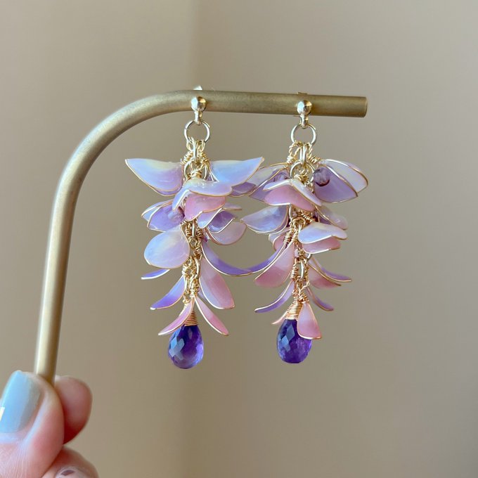 #春の創作クラスタフォロー祭り 🏷お借りします😊 ワイヤーとレジンでネジネジちまちまとアクセサリーを作っています🙌✨ 春の作品も増えてきました🌸 お見知りおきを〜🙏 #レジン #ワイヤーアクセサリー