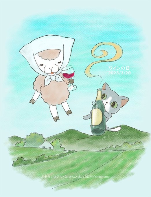 私は赤ワインの渋さをまだ受け入れられないお子様なのですが、おにぎりはどちらも飲めるみたいですね……?🍷🍾 #ゆるいイラスト #ユニプラ絵 #イラスト #イラスト好きな人と繋がりたい #illustration #夏の創作クラスタフォロー祭り #絵柄が好みって人にフォローされたい #ワインの日