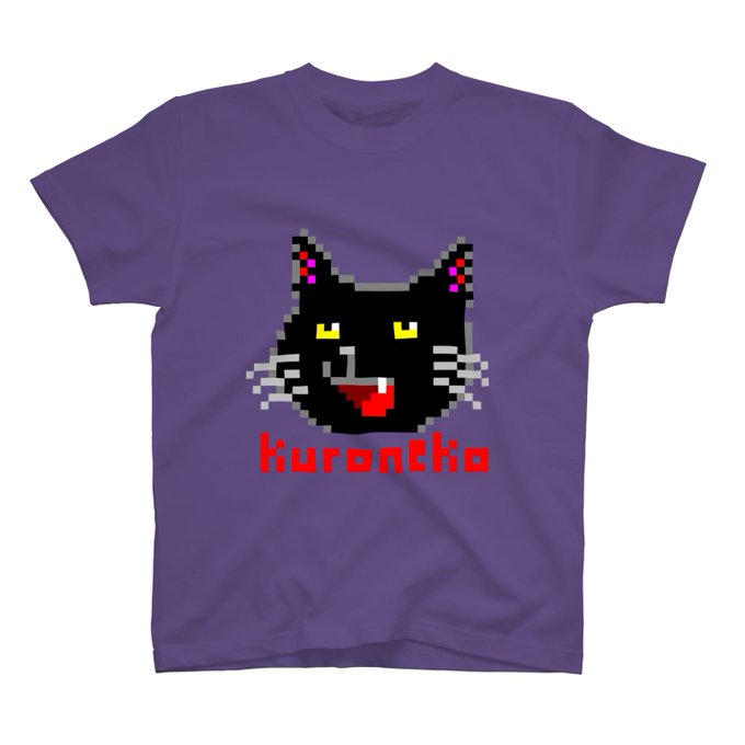 機嫌のよさそうな黒猫のTシャツ(生地カラー: バイオレットパープル) #ワクワクおえかきランド 無真獣73号のドット絵のごきげんな黒猫スタンダードTシャツ @musinju73 suzuri.jp/musin/11969375… #suzuri