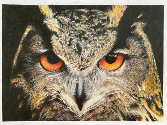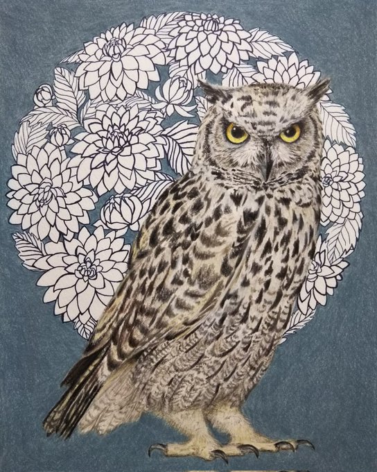 ミミズク、できました。 拡大してみて! #ミミズク #ワシミミズク #梟 #色鉛筆 #色鉛筆イラスト #illustration #Illustrations #illustrationart #art