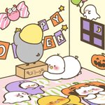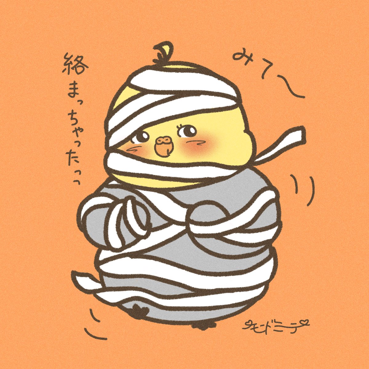 「キョンシーの仮装したら宙に浮いちゃったって話聞く??🤭」 #mondemite #モンドミーテ #鳥ちゃんズ #ワタシリョク #キョンシー #ハロウィンイラスト展示会2021 #ハロウィン