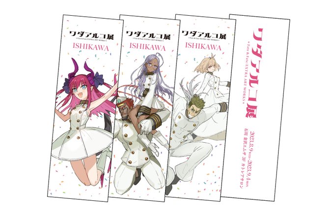 明日8/9から金沢エムザカトレアサロンにて 🌹#ワダアルコ展 金沢🌹開催です~~~!!! 遊びにきてね~💕 kmza.jp/mz_event/post-… 来場者ノベルティのブックマーカーは エリザベート、ラニ&呂布、ガトー&アルクの三種~! twitter.com/wadarco_artwor…