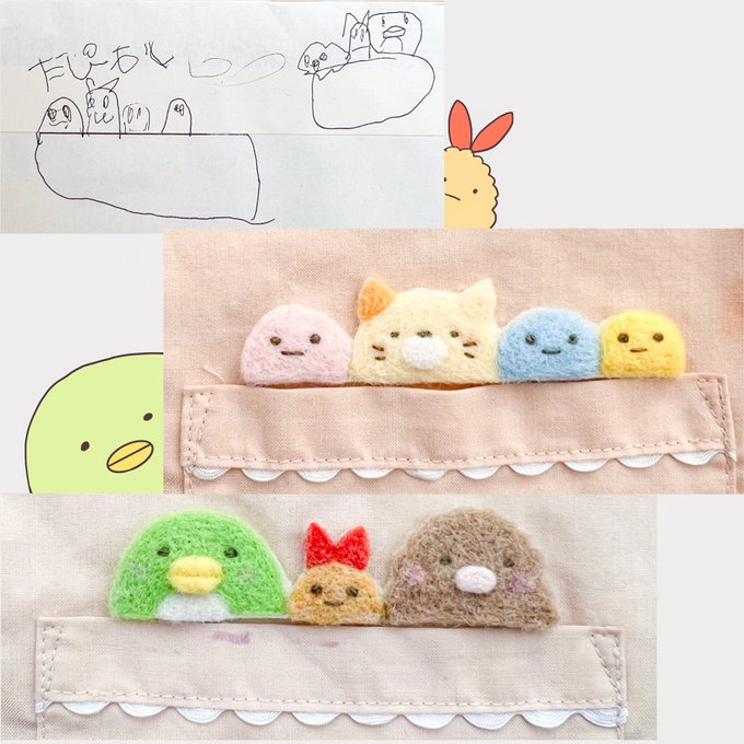 ちょっと番外編ですみっコぐらしワッペン✨ 1番上が娘からの発注書😆ワッペン作り、ちょっとハマりそう〜☺️ #ハンドメイド #handmade #羊毛フェルト #needlefelting #ハンドメイド好きさんと繋がりたい #すみっコぐらし #すみっコぐらしハンドメイド #スモックデコ #スモックアレンジ #ワッペン
