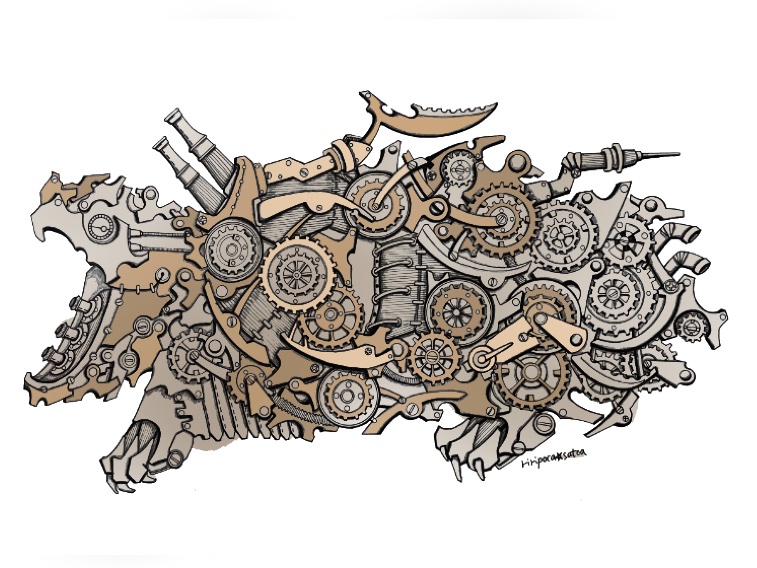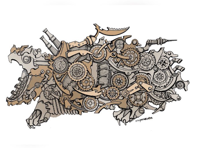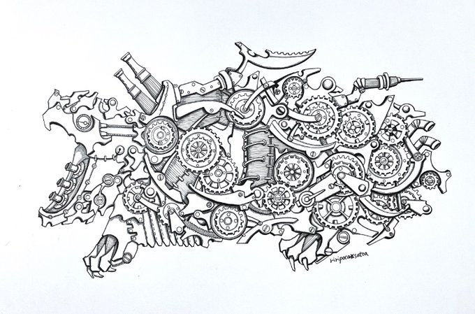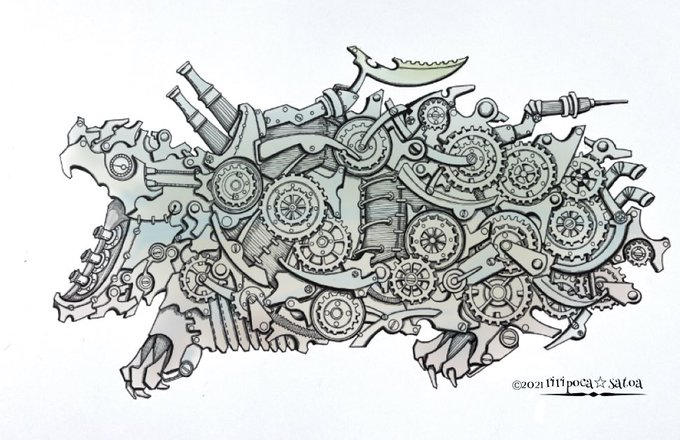 お疲れ様でした✨✨ ⚙ワニガメ⚙ #スチームパンクイラスト #歯車イラスト #ペン画 #ワニガメ #アトリエの系譜plus #アトリエの系譜S #絵師さんと繋がりたい #今日もありがとう