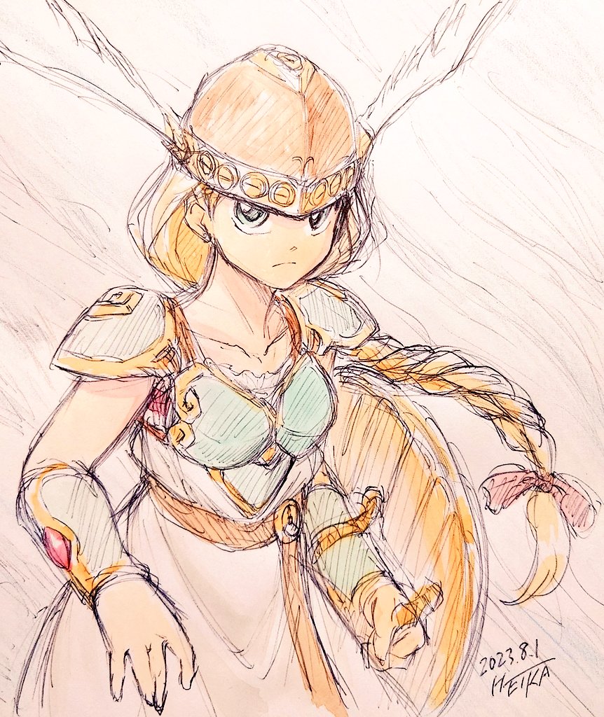 #ワルキューレの冒険 37周年ですか!?おめでとうございますー!! 「冒険」と「伝説」どっちだったか忘れる事もありますが、ゲームに出てくる宿屋の安心感、その節は大変お世話になりましたm(_ _)m 過去絵になりますがワルキューレです!三つ編みさいこーです!