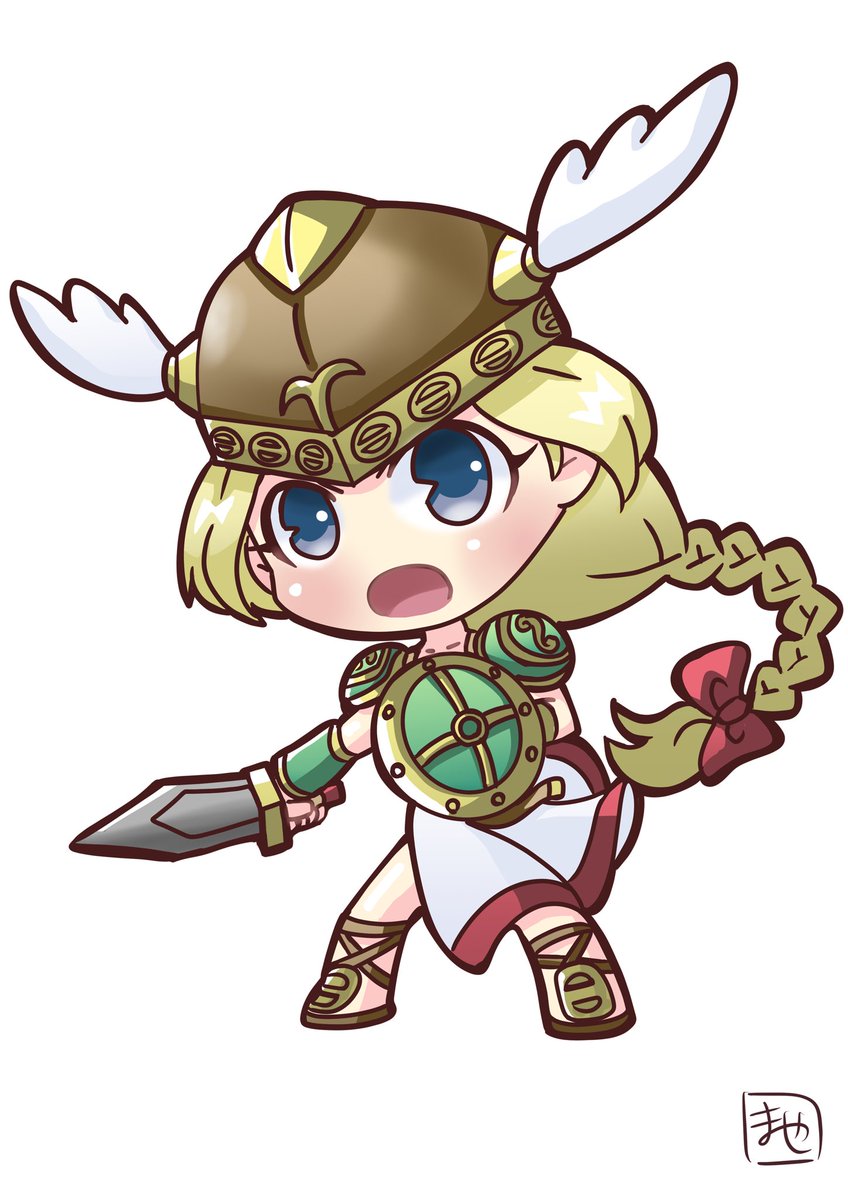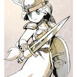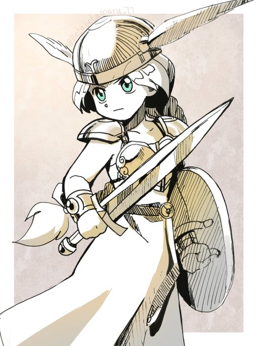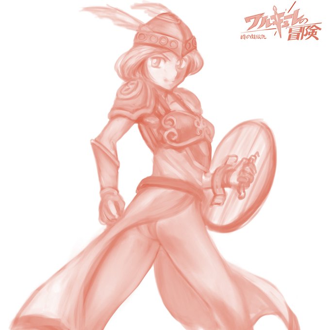 …と、とりあえず、過去絵だけではアレですので、ワルキューレさんのラフ💦 いやもう、ロゴまで描いてみたワリに、剣を持っていなかったり、おさげ描き忘れてたり…orz #ワルキューレの冒険 twitter.com/minamoto80486/…