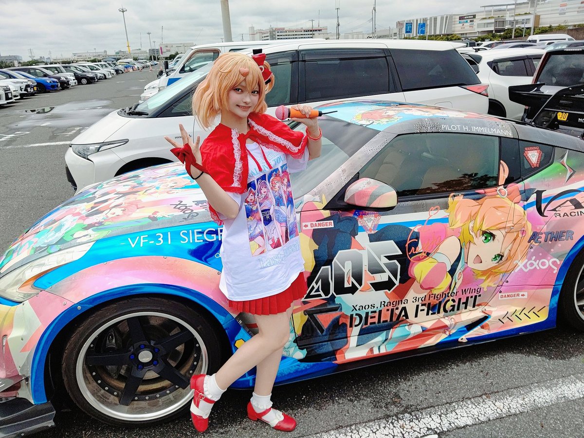 #ワルキューレラストミッション #ワルキューレファイナルライブ 今年も!!コンパニオンでお世話になってるマクロス痛車✨オーナーさんにご招待頂きました😳両日おります! フレイア🍎捏造コーデお許し下さい💦