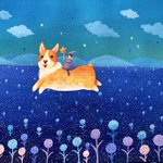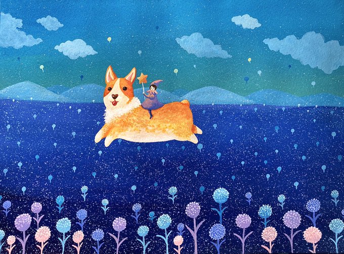 ワンちゃんと一緒に飛び上げる精霊 夏を照らすラッキスター 願いを叶えましょう♪ #illustraion #illusrtationart #art #artwork #ワンちゃん #動物イラスト #絵画 #絵描きさんと繋がりたい #イラスト #芸術の輪 #芸術 #絵本