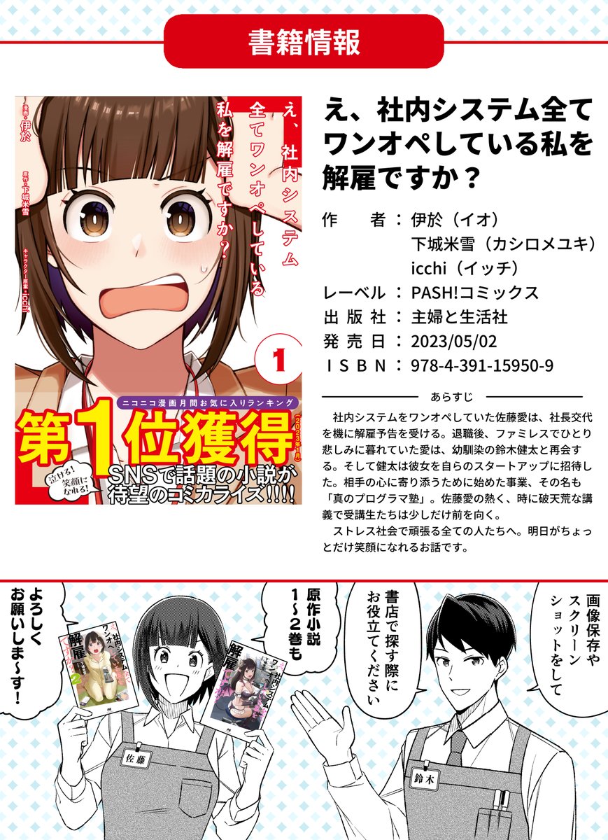 『え、社内システム全てワンオペしている私を解雇ですか?』 通称:#ワンオペ解雇 5月2日に単行本1巻発売しました!よろしくお願いします!! ■ Amazon:amzn.to/3NcYWZ0 ■ 版元ドットコム(一括検索サイト):hanmoto.com/bd/isbn/978439…