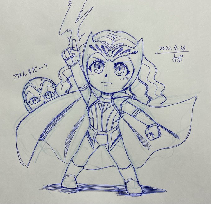 #おやすみイラスト フジは意外とSDキャラもいけるということを強調しておきたい。 にしても来週もうMoM公開かー。 サム・ライミ監督だし楽しみすぎる! #落書き #アナログ絵 #MCU好きと繋がりたい #ワンダヴィジョン #スカーレットウィッチ