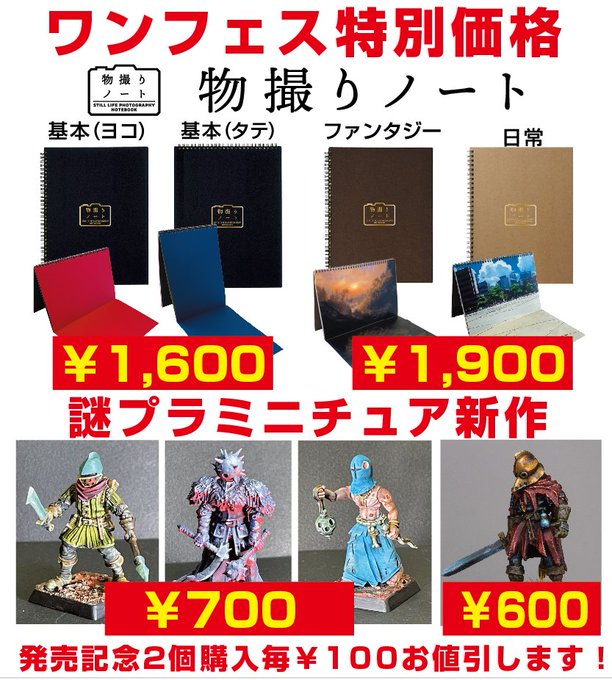 今月末開催の #ワンダーフェスティバル にてタチキタプリントのブースにて出店いたします。ブース番号 7-07-07 になります。#物撮りノート や 謎プラミニチュアの新作各種を持ち込む予定です(工場から届いたら)自分も終日おりますのでよろしくお願いいたします(画像の予定価格です)#WF2023S