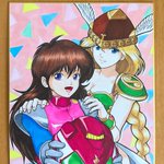 本日4回目のワルキューレの伝説記念日のお祝いに、昨年末まやしさんのリクエストで描いたワルキューレさんとワンダーモモさん 色紙として描いた物です💖 #ワルキューレの伝説 #ワンダーモモ #namco