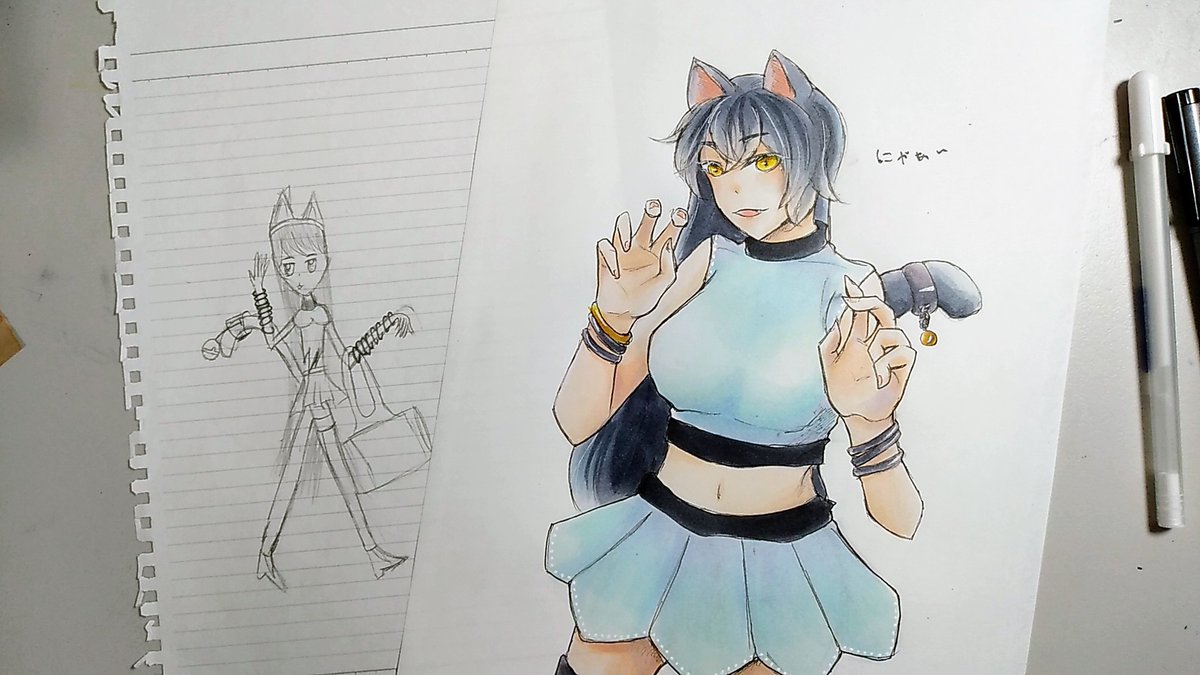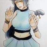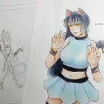 №4〈ブラックオリジン〉 ⁄(⁄ ⁄•⁄-⁄•⁄ ⁄)⁄ 元絵?はまだコナン味がないからたぶん小2から3らへん たぶん輪っかを描くのにはまってる あのカバンなに? 自分にしては露出が多い服。。。 #ワンドロシャトルラン #なつめさんちの美術室 #アナログ #イラスト