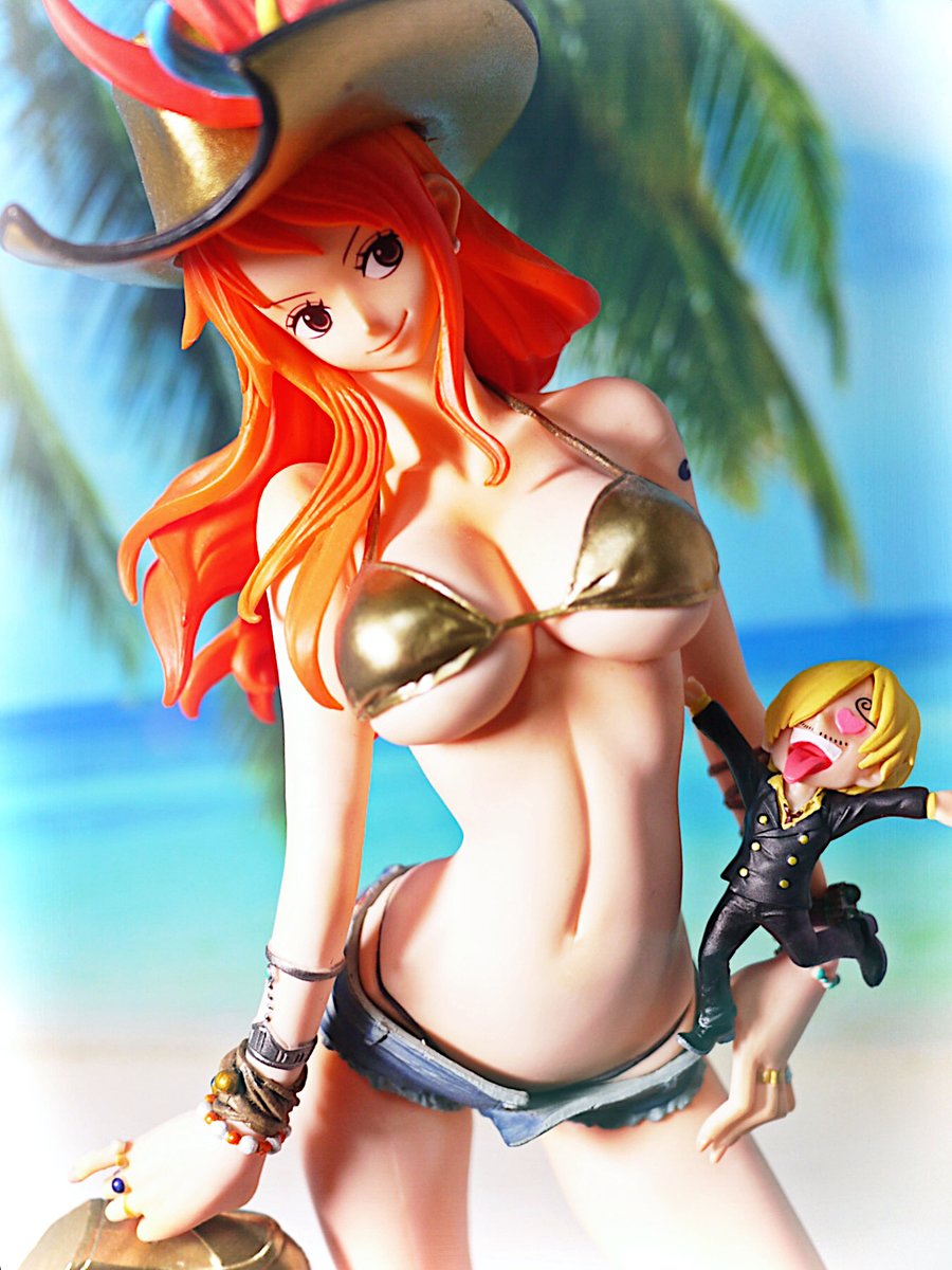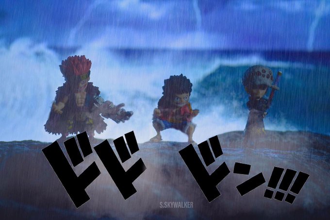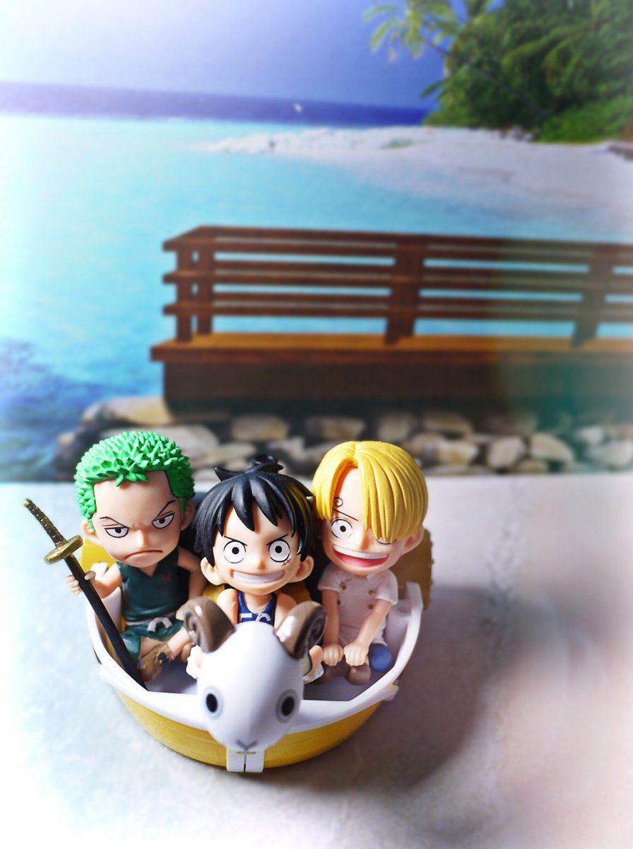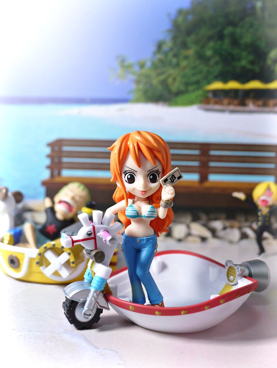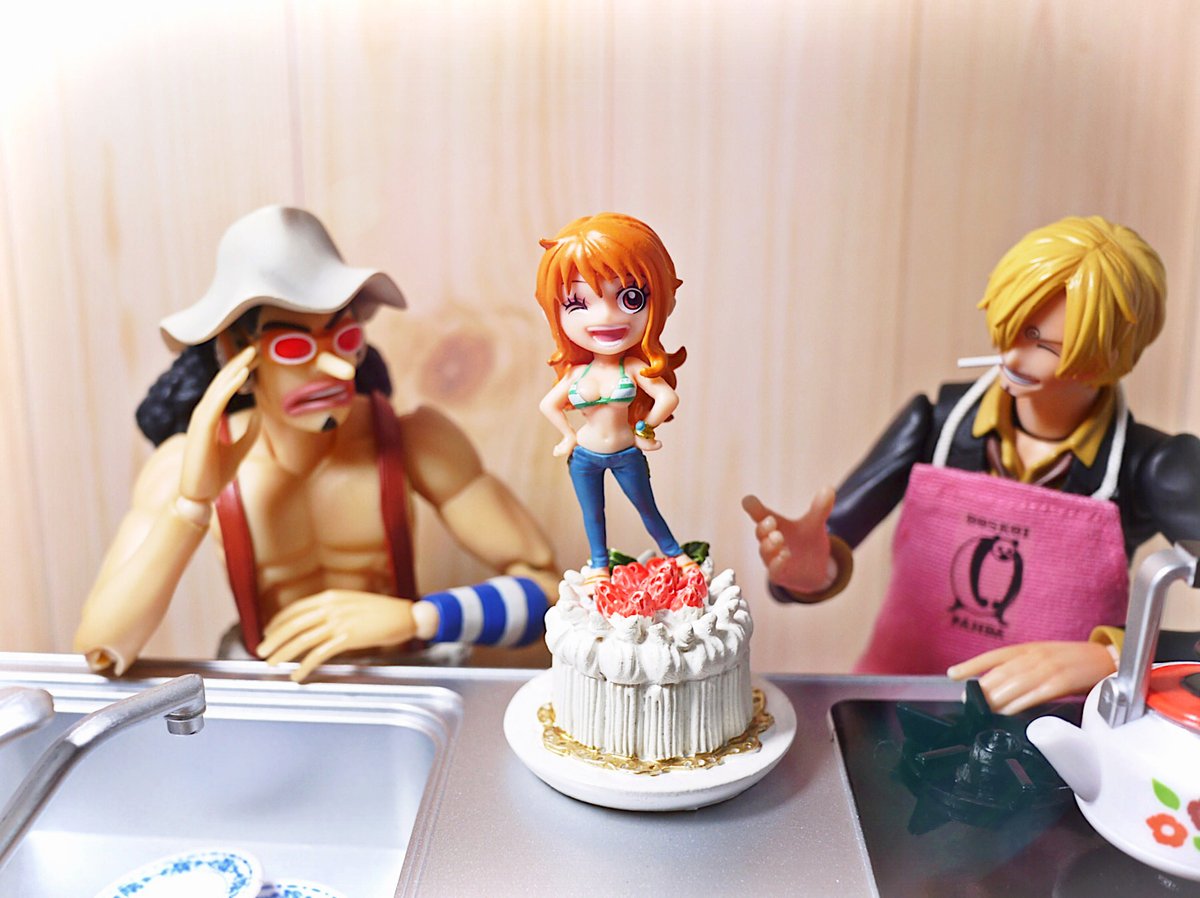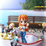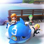 #夜のフィギュア撮影会 1/28 お題 『フリー』 #ワンピの実 のソルジャードックシステムVol.1を1回だけ回してシャークサブマージをゲットしたので、同じワンピの実のナミさん(+サンジ君+ゾロ)で撮ってみた! #onepiece #ガチャガチャ #カプセルトイ #ワンピースフィギュアを投稿しよう