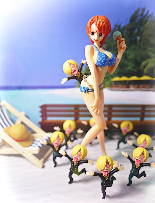 #夜のフィギュア撮影会 7/22 お題『フリー』 ワンピの実のサンジ君が交換とお譲りで9人集まったので、ナミさんと記念写真。ご協力いただいた方々ありがとうございました! #onepiece #sanji #nami #ワンピの実 #ワンピースフィギュアを投稿しよう